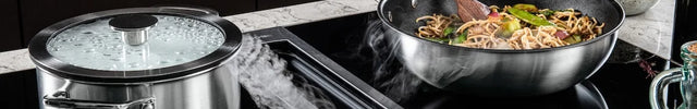 Keuken, keukeneiland, op een inductie- of andere kookplaat, op het aanrecht, op de keukentafel of in een nette kast.