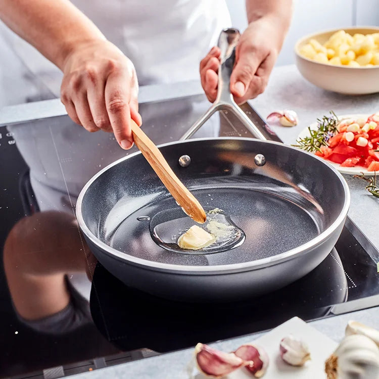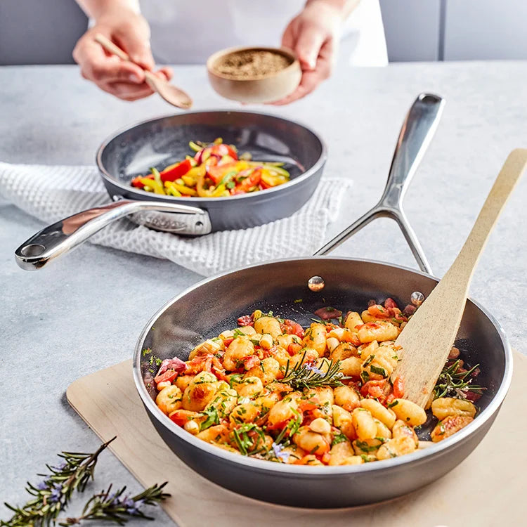 Dankzij de Ceraforce keramische antiaanbaklaag kook je met minder vet en zonder schadelijke stoffen. Dit maakt de pannen een gezond alternatief voor traditionele antiaanbaklagen. De ergonomische, gegoten grepen bieden een stevige grip en zijn bevestigd met roestvrijstalen rivetten voor extra duurzaamheid. Voor een langere levensduur is handwas aanbevolen, maar de pannen kunnen ook in de vaatwasser.
