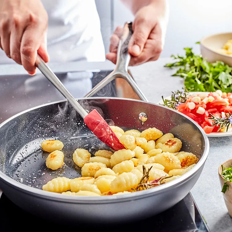 de pan altijd vlak blijft. De exclusieve TriplInduc® technologie presteert perfect op inductie. Je hebt tot 30% minder energie nodig voor dezelfde temperatuur.