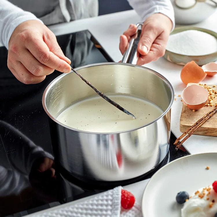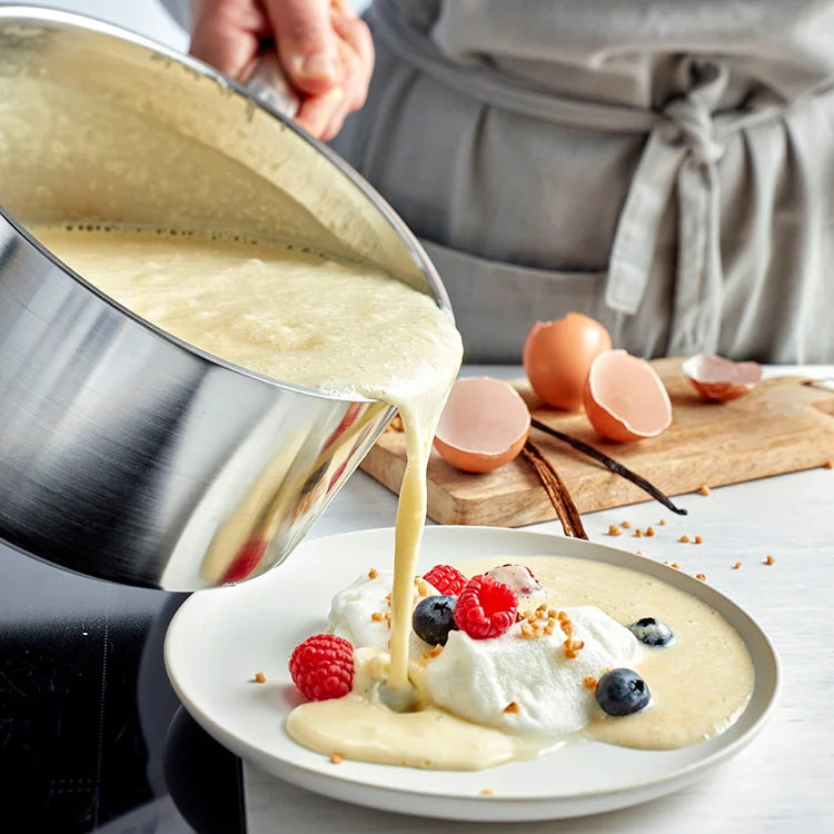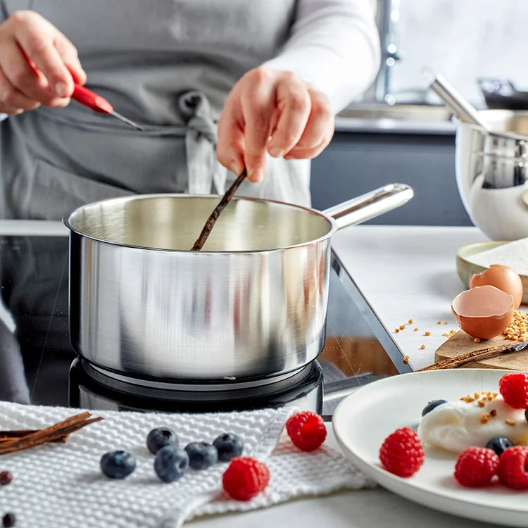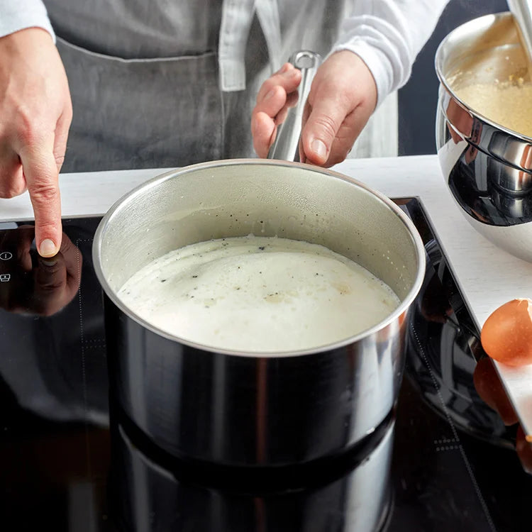 Het roestvrij staal met Silvinox technologie blijft lang mooi en verkleurt niet. Schoonmaken gaat eenvoudig, want de pan kan zonder problemen in de vaatwasser. De ergonomische, gelaste rvs greep ligt stevig in de hand en is extra hygiënisch doordat er geen naden zijn waar vuil in kan blijven zitten. De speciale gietrand voorkomt knoeien bij het uitschenken.