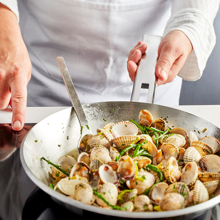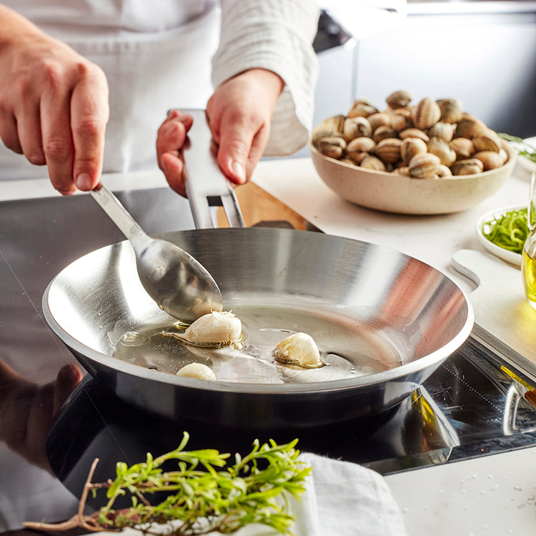 De stevige roestvrijstalen, gelaste greep ligt prettig in de hand en is extra hygiënisch. De Silvinox behandeling voorkomt verkleuring en houdt de pan glanzend, zelfs na veel gebruik. De handige gietrand maakt uitgieten netjes en eenvoudig. De pan is geschikt voor alle kookplaten en kan ook in de oven, ideaal voor aanbraden en verder garen. Schoonmaken gaat snel en de pan kan probleemloos in de vaatwasser.
