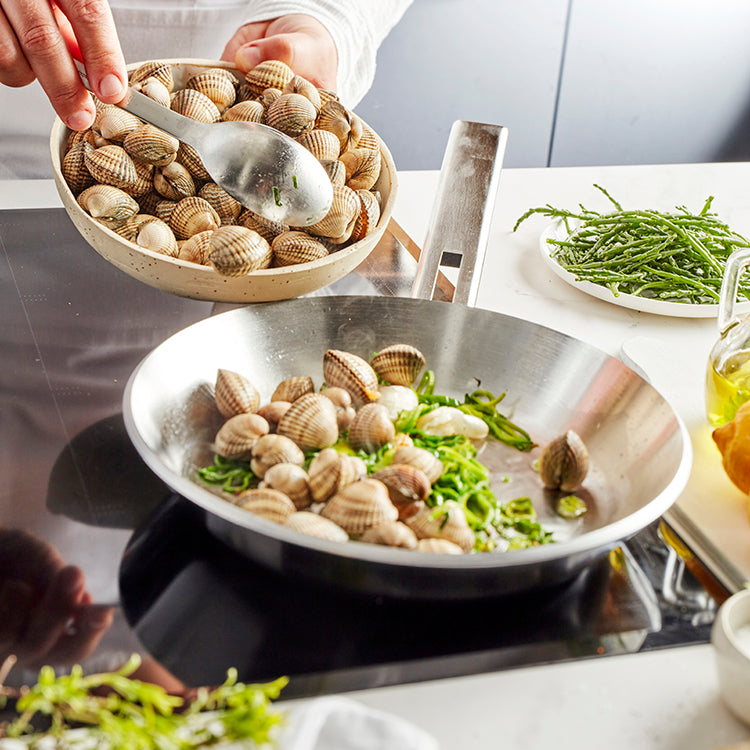 De Demeyere John Pawson 7 koekenpan is ideaal voor wie houdt van strak design en uitstekende prestaties. Het meerlagenmateriaal loopt door tot aan de rand en zorgt voor een snelle en gelijkmatige opwarming. Dankzij de TriplInduc technologie kook je extra efficiënt op inductie en bespaar je tot dertig procent energie. De InductoSeal bodem met koperen kern geeft een uitstekende warmtegeleiding, zodat je altijd werkt met een stabiele temperatuur.