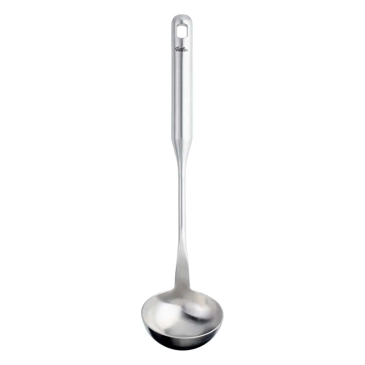 Fissler Essential is de vertrouwde assistent voor elke thuiskok. De sauslepel past perfect in de complete reeks tools zoals spatels, schuimspanen, lepels en stampers. De naadloze overgangen maken schoonmaken eenvoudig; de lepel is vaatwasserbestendig en ook met de hand snel schoon. Met deze tijdloze, betaalbare keukentool presenteer je gerechten elegant en kook je met meer plezier, elke dag.