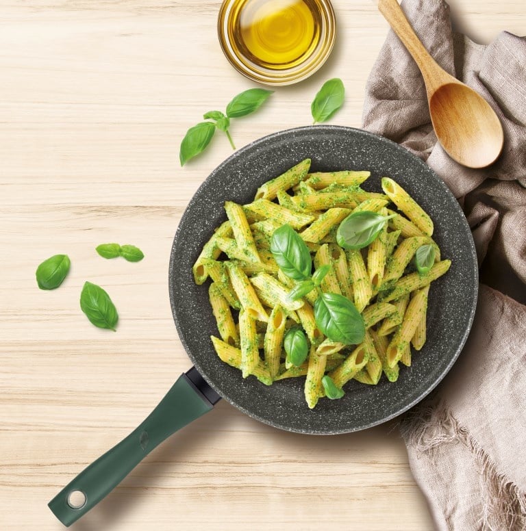 De TVS Natura Koekenpan Eco is de ideale keuze voor koks die duurzaamheid en kwaliteit hoog in het vaandel hebben staan. Deze koekenpan is voorzien van een gerecyclede antiaanbaklaag, wat bijdraagt aan een milieuvriendelijker kookproces. De antiaanbaklaag zorgt ervoor dat ingrediënten niet blijven plakken, waardoor je met minder vet kunt koken. Dit resulteert in gezondere maaltijden zonder in te boeten op smaak.