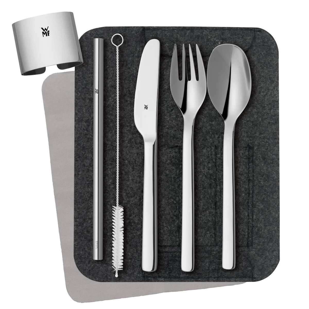 Geniet onderweg van je lunch of diner met de luxe WMF My2Go bestekset. Of je nu op je werk bent, in het park of onderweg naar een afspraak: met deze 4-delige RVS set eet je altijd comfortabel en milieubewust. Het bestek en drinkrietje zijn gemaakt van hoogwaardig Cromargan® 18/10 roestvrij staal een duurzaam en hygiënisch alternatief voor wegwerpbestek. Dankzij het compacte formaat en de stevige etui neem je deze set moeiteloos overal mee naartoe.