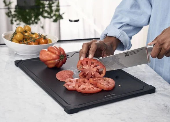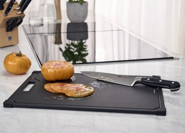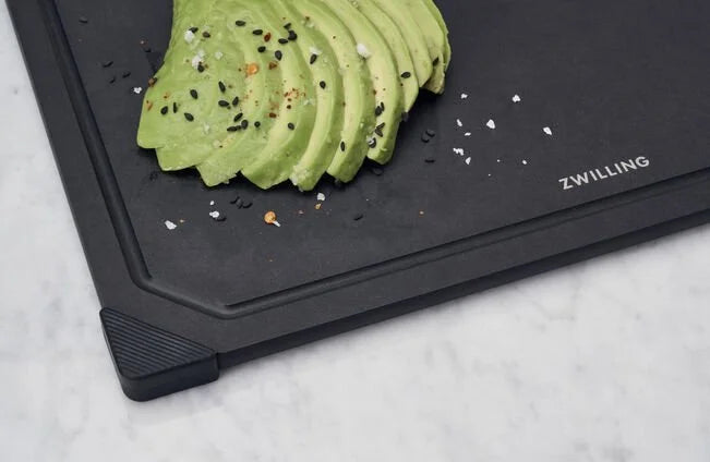 De Zwilling snijplank is ontworpen met oog voor hygiëne en gebruiksgemak. Het oppervlak is zo hygiënisch als plastic, maar voelt net zo zacht aan als hout. Aan één zijde vind je een praktische saprand die voorkomt dat sappen van vlees, fruit of groenten op het aanrecht terechtkomen, terwijl de andere zijde vlak is voor algemeen gebruik. Dankzij de antislip siliconen voetjes blijft de plank stevig op zijn plek, zelfs tijdens intensief snijden. Na gebruik maak je de snijplank eenvoudig schoon, hij is namelijk vaatwasmachinebestendig. Met de Zwilling Vezelhout Snijplank kies je voor kwaliteit, hygiëne en een stijlvol design dat perfect past in elke moderne keuken.